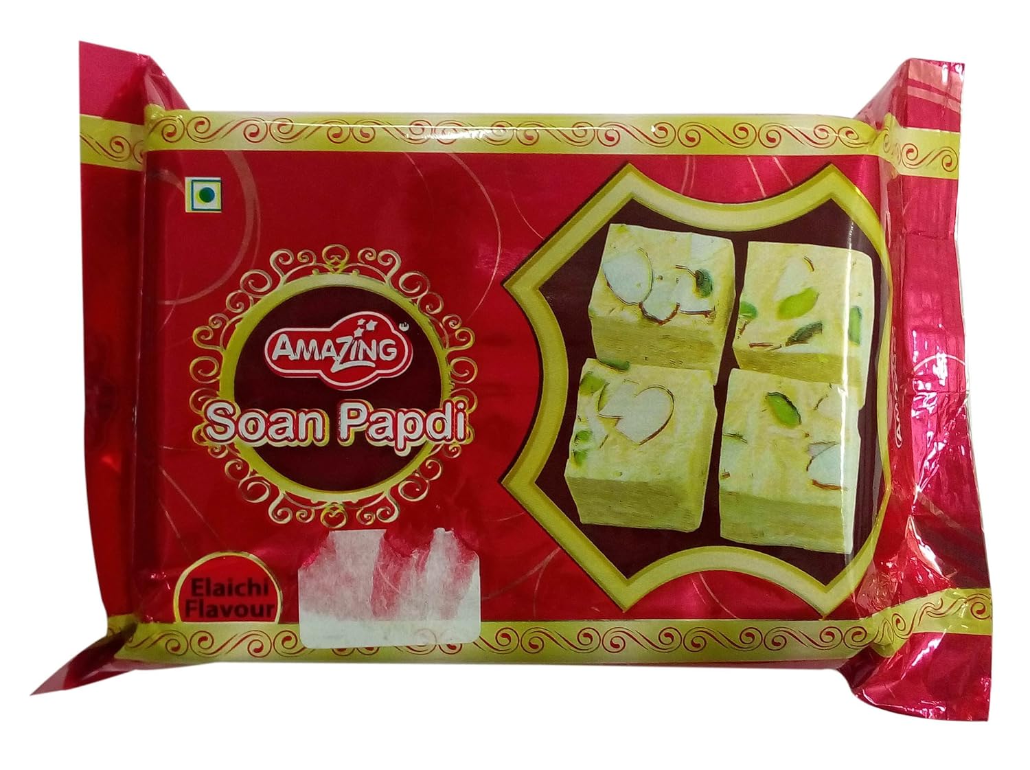 INGREDIENTS:- Clarified Sugar (39%), Gram Flour (30%), Edible Vegetable Oil (Refined Palmolein Oil) (23%), Glucose, Cardamom, Almond, Pistachio and Wheat Fibre.