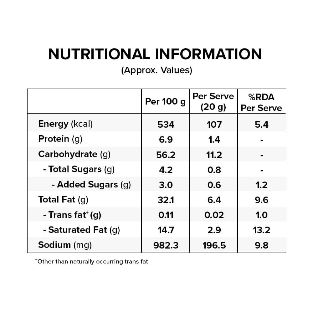 INGREDIENTS:- Rice Grits, Seasoning {Refined Palmolein, Sugar, Iodized Salt, Spices and Condiments, Nature Identical Flavouring Substances, Acidity Regulators (INS 330, INS 260, INS 334, INS 296), Dehydrated Garlic, Dehydrated Onion, Natural Flavours and Natural Flavouring Substances, Flavour Enhancer (INS 635), Refined …
