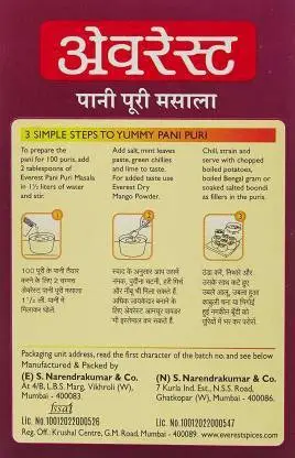 एवरेस्ट पानी पूरी मसाला के साथ प्रामाणिक भारतीय स्ट्रीट फ़ूड के स्वादिष्ट आनंद का आनंद लें। काली मिर्च, इमली और सौंठ का यह बहुमुखी मिश्रण आपकी घर की बनी पानी पूरी में एक लज़ीज़, तीखा और तीखा स्वाद जोड़ता है।