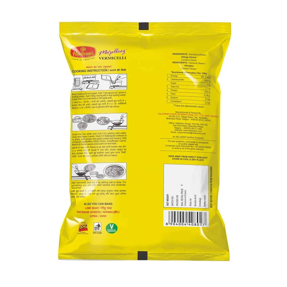 Haldiram’s Vermicelli can be used to prepare mouthwatering desserts like kheer or payasam, or savoury dishes like upma or .