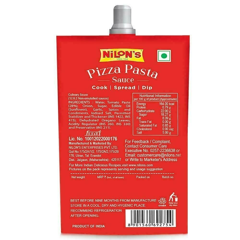 निलोन्स पिज़्ज़ा पास्ता सॉस कुचले हुए टमाटरों और मसालों के एक आकर्षक मिश्रण से बनाया जाता है। इस चटनी को बनाने के लिए सभी सामग्रियों को विशेष रूप से चुना गया है। उपयोग के लिए तैयार यह सॉस स्वच्छतापूर्वक पैक किया गया है। यह जड़ी-बूटी इसे एक प्रामाणिक इतालवी सुगंध और स्वाद देती है।