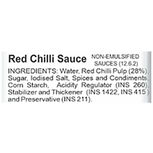 Water, Red Chilli, Garlic, Ginger, Salt, Corn Starch, Sugar, Acidity Regulator, Preservative, Stabiliser & Emulsifier.