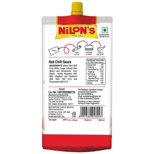 निलोन्स रेड चिली सॉस लाल मिर्च से बनाया जाता है और मसालों के साथ पकाया जाता है। यह एक गुणवत्तापूर्ण उत्पाद है जिसे इसकी ताज़गी और रंग बरकरार रखने के लिए स्वच्छतापूर्वक संसाधित और पैक किया गया है। यह विटामिन सी से भरपूर है जो प्रतिरक्षा प्रणाली का समर्थन करने और पुरानी बीमारियों से लड़ने में मदद करता है।