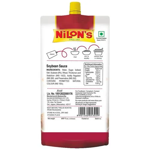 चाउमीन या तले हुए चावल जैसे चीनी व्यंजनों में अतिरिक्त स्वाद जोड़ने के लिए निलॉन का सोया सॉस एकदम सही सॉस है। सॉस में रंग की गहरी गहराई और थोड़ा खट्टा स्वाद है जो इसे सब्जियों, मांस और अन्य चीजों को तलने के लिए एकदम सही बनाता है। इसका अतिरिक्त स्वाद उन चीनी व्यंजनों के लिए बिल्कुल उपयुक्त है जिनके लिए गाढ़ी चटनी की आवश्यकता होती है।