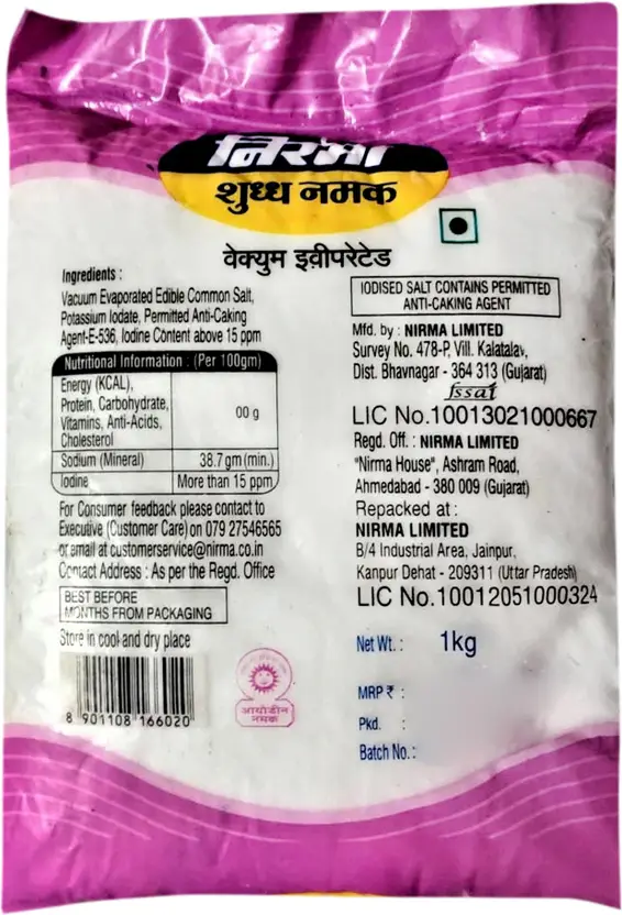 Nirma Shudh Salt, the refined and very much edible salt which is helpful for your digestion. This is safe to be consumed even for the heart and diabetic patients, as it is exactly composed and hygienic.