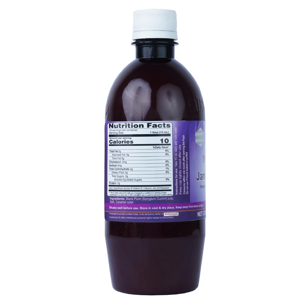 INGREDIENTS:- Patanjali Jamun Vinegar (Sirka) 500ml primarily contains Jamun pulp (Syzygium cumini L. Skeels). Additionally, it includes excipients like Caramel color as per the Prevention of Food Adulteration (PFA) Act.