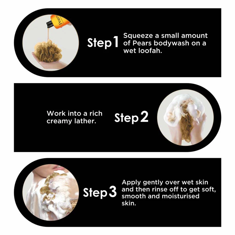 Pears Pure & Gentle body wash, crafted with 98% pure glycerin and natural oils. It is a pure and gentle cleanser for your body that leaves your skin feeling soft, smooth and moisturised. Pears Body wash is mild and gentle and cleanses your skin thoroughly.