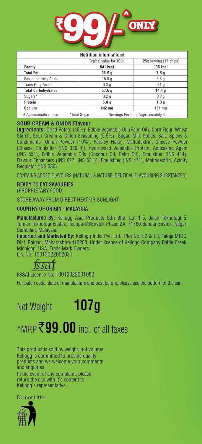 INGREDIENTS:- Dried potatoes, Vegetable oil, Corn flour, Corn starch, Sugars (maltodextrin, sugar, dextrose), Rice flour, Mono- and diglycerides, Modified milk ingredients, Salt, Monosodium glutamate, Onion powder, Coconut oil, Sour cream solids (milk ingredients, bacterial culture), Natural flavour, Citric acid, Lactic acid, …