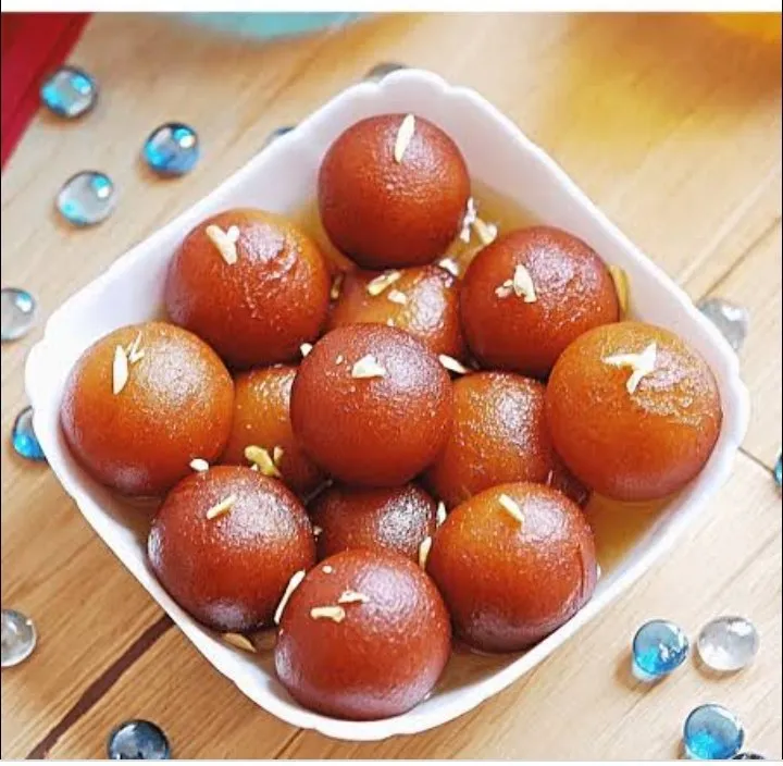 गुलाब जामुन तले हुए आटे के गोले की एक भारतीय मिठाई है जिसे मीठी, चिपचिपी चीनी की चाशनी में भिगोया जाता है। परंपरा के अनुसार, सिरप में एक नाजुक गुलाब का स्वाद होता है: गुलाब का अर्थ है ‘गुलाब जल’ और जामुन एक समान आकार और रंग की बेरी को संदर्भित करता है।