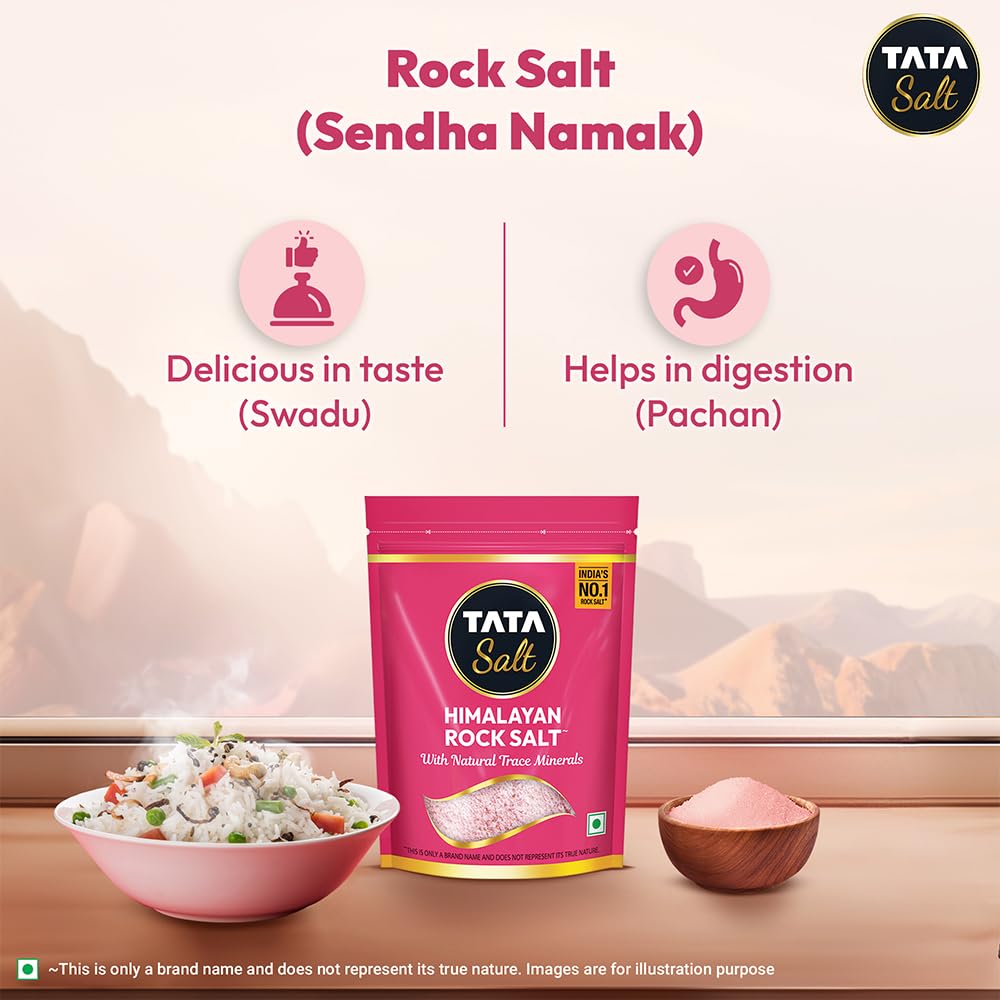 टाटा साल्ट हिमालयन रॉक साल्ट ~ सीधे पहाड़ों से प्राप्त होता है और इसमें कैल्शियम, मैग्नीशियम और पोटेशियम जैसे प्राकृतिक ट्रेस खनिज होते हैं।
