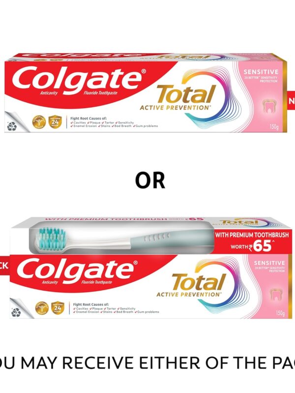 COLGATE TOTAL ACTIVE PREVENTION SENSITVE TOOTHPASTE 150G ( WIT PREMIUM TOOTHBRUSH WORTH RS.65)